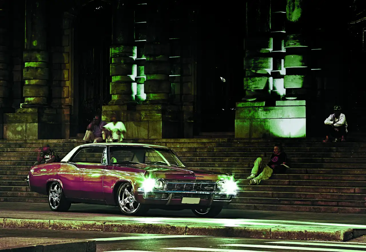 Удивительно, как тюнинг меняет восприятие автомобиля. ВАЗ-2109 с черной тонировкой, катафотами, ленточками-антистатиками и колпаками – это стопроцентные "Черные глаза" и "Владимирский централ". Та же машина, но уже в правильном обвесе, на красивых колесах, прижатая к дороге – уже что-то вроде Rammstein и System of a Down.Так же и эта Impala: бывшая в прошлой жизни обычной попсой, она стала роскошным ритм-н-блюзом.