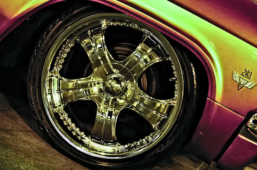 Тут надо сказать, что самое частое воплощение "Импалы" в тюнерских руках – лоурайдер. Благодаря мощной Х-образной раме эта машина может выдерживать невероятные нагрузки во время прыжков-танцев на пневмоподвеске. Тем удивительнее, что Бруно предпочел другой путь. Впрочем, и у этого варианта есть последователи. Такой стиль в Америке называется DONK – машины на больших колесах, но стандартной подвеске. Впрочем, подвеску, конечно, перетряхнули, поставив новые стойки, но занижать не стали. А вот колеса... ммм… производства фирмы Tsuya с говорящим названием Snake – они бы смотрелись чисто рэперским аксессуаром на "Эскаладе" или "Хаммере", но на "Импале" они выглядят настолько естественно, что, кажется, стояли здесь с завода. Конечно, впечатление такое создается из-за нового экстерьера.