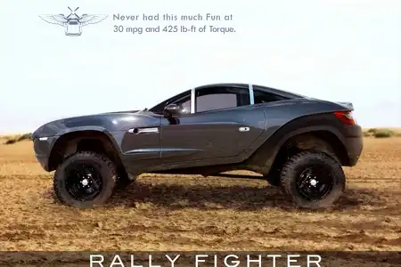 Одним из наиболее интересных аспектов нового Rally Fighter является то, что автомобиль оснащен 3,0 л дизельным агрегатом TwinTurbo от BMW 335d. Мощность 6-цилиндрового рядного турбодвигателя составляет 265 л.с., а максимальный крутящий момент составляет 425 фунт/фут при 1 750 оборотов/мин. Тяга в автомобиле подается на задние колеса благодаря 6-ступенчатой автоматической коробке передач. Вес кроссовера Rally Fighter составляет 1 360 – 1 450 кг, расход топлива – 15,3 км/литр на трассе и 12,8 км/литр при движении по бездорожью.