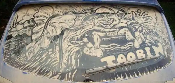 Рисунки на грязных стеклах машин