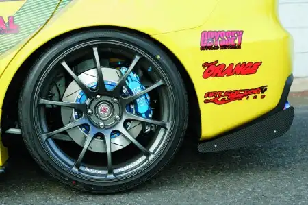 Всем понятно: чтобы выделиться среди конкурентов, необходимо поработать над внешностью, тем более что на выставочном стенде мощность не померить… Но, глядя на список доработок, понимаешь, что и тут «джановцы» слегка нахалтурили, если можно так выразиться о таком ателье. Никакого обвеса, только карбоновые рассекатели под порогами и бамперами да немного измененная форма заднего диффузора. Ну не тырить же в самом деле у «Вариса» их – пожалуй, единственный существующий на сегодняшний день на рынке вариант обвеса на Evo X! Чтобы исправлять ситуацию, машину разукрасили в боевые цвета команды. Тебе отлично должен быть знаком этот солнечный колор по Stream-Z Даиджиро Инады, по другой, уже полноприводной «Фашке» китайского олигарха, тем более что об этих машинах мы писали. Финальными аккордами во внешности стали карбоновое антикрыло на багажнике от Sard и 19-дюймовые диски Yokohama Advan Racing RZ. Как ни крути, но даже наш критический и предвзятый тюнерский взгляд говорит, что смотрится результат внушительно, да и, положа руку на сердце, для Time Attack большего и не надо…