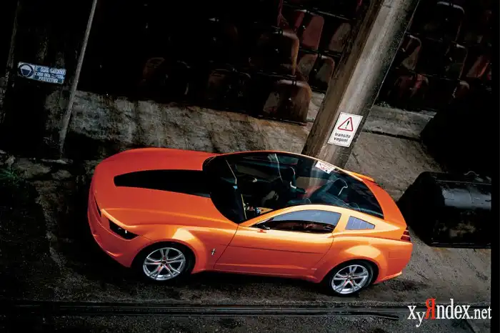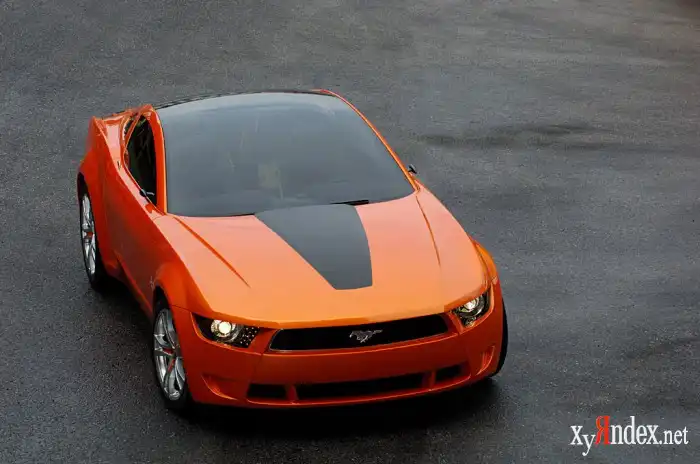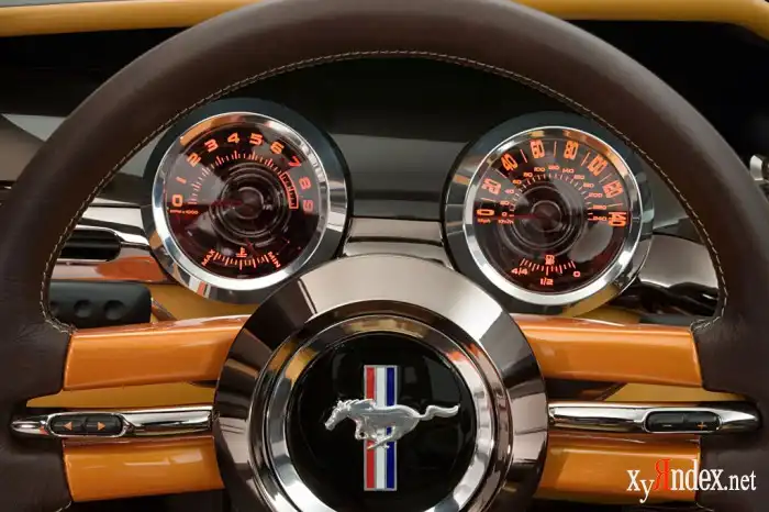 Такой красивый кузов нужно было поставить, а точнее, одеть, на что-то достойное. С этим помогло спортивное отделение Ford Racing. Его инженеры модернизировали подвеску серийного Мустанга, немного подрезав пружины, переколибровав амортизаторы и усилив стабилизаторы поперечной устойчивости. Модернизированное шасси украсили 20-ти дюймовыми колесными дисками оригинального дизайна, обутыми в низко профильные шины размерности 275/40 — спереди, и 315/35 — сзади. Не лишим, будет отметить, что дизайн колес идеально соответствует стилю кузова. К тому же «спицы» колесных дисков, скорее кованных, чем литых, покрасили в цвет кузова.