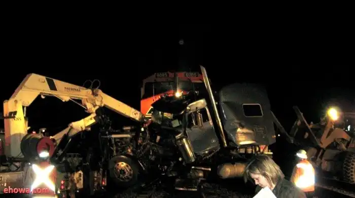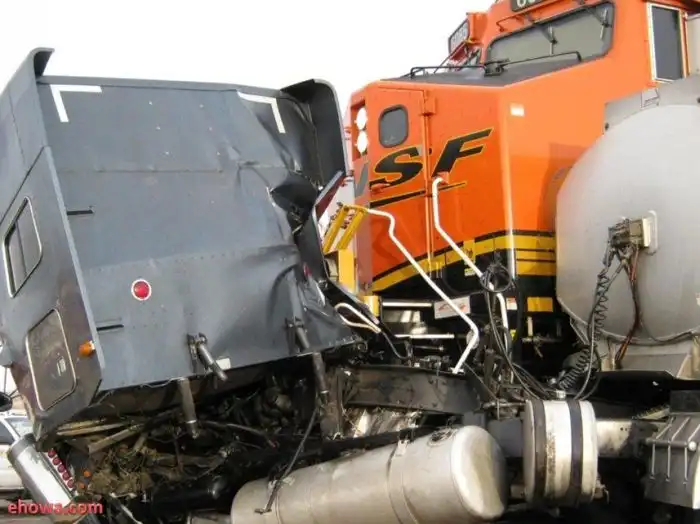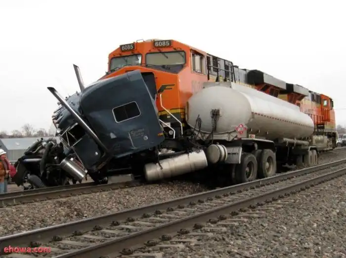 Поезд столкнулся с фурой, которая перевозила горюче-смазочные материалы.Поезд почти не пострадал, чего не скажешь о втором участнике этой аварии.