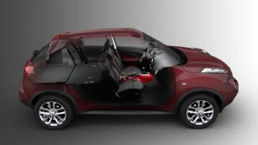 По словам разработчиков, Nissan Juke вобрал в себя лучшие элементы SUV и спортивных автомобилей и объединил их. Это подчеркивается и в дизайне: нижняя часть от внедорожника (большой дорожный просвет, уверенная «стойка» на широких колесах, пластиковая защита), верхняя – от спортивного авто (графика боковых окон, линия крыши). Скрытые ручки задних дверей усиливают эффект купе.