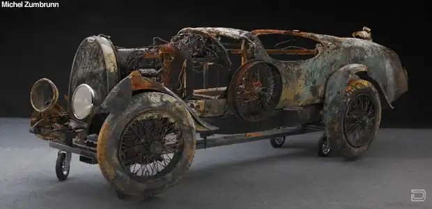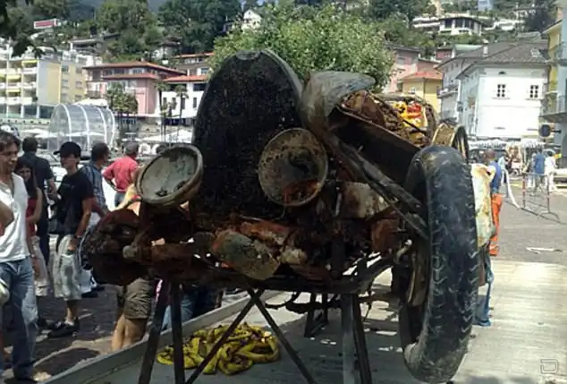 На аукционе ретромобилей в Париже был продан ржавый остов классического автомобиля Bugatti Brescia Type-22 (в 1925 году), который более 70 лет пролежал на дне озера в Швейцарии и недавно был поднят водолазами.
