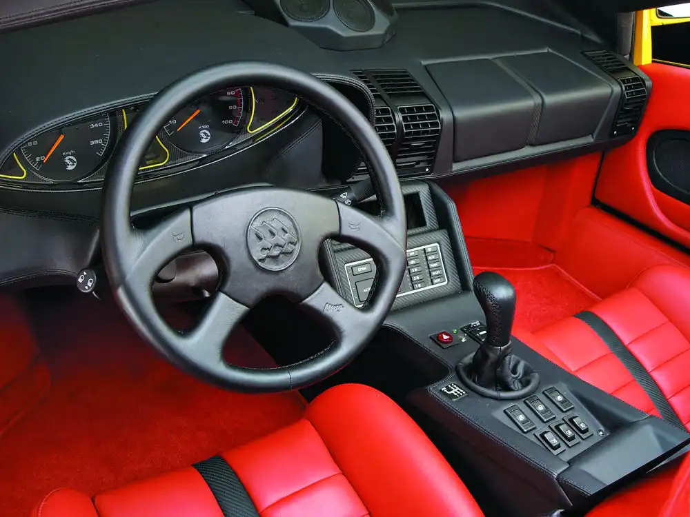 Автомобиль напоминает модель Diablo потому что над дизайном работал Марчелло Гандини,тот самый кто создавал модели Lamborghini Diablo и Countach.