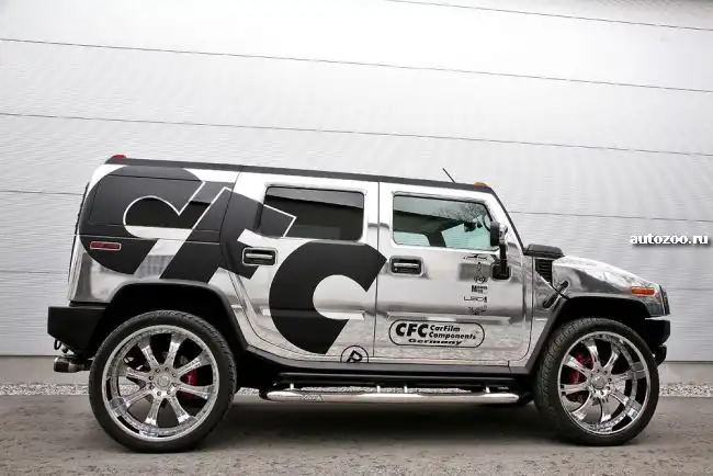 Немецкий тюнер CFC нарядил этот Hummer H2, словно новогоднюю елку, и, верите вы или нет, но в нем есть абсолютно все, что вам нужно для развлечений. H2 был поставлен на огромные хромированные колесные диски R28 с резиной Kumho 325/35, а также получил двери Lambo-Style и множество хромированных деталей экстерьера. Интерьер авто был тоже изготовлен по высшему сорту, а именно, было установлено несколько 17 дюймовых мониторов, проигрыватель HD TV, минибар и акустическая система на 1360 Ватт. Тюнинг ателье CFC даже не забыло про увеличение мощности двигателя, который теперь выдает 480 л.с. О цене новинки пока ничего неизвестно.