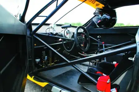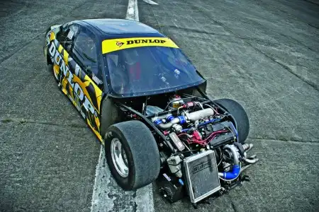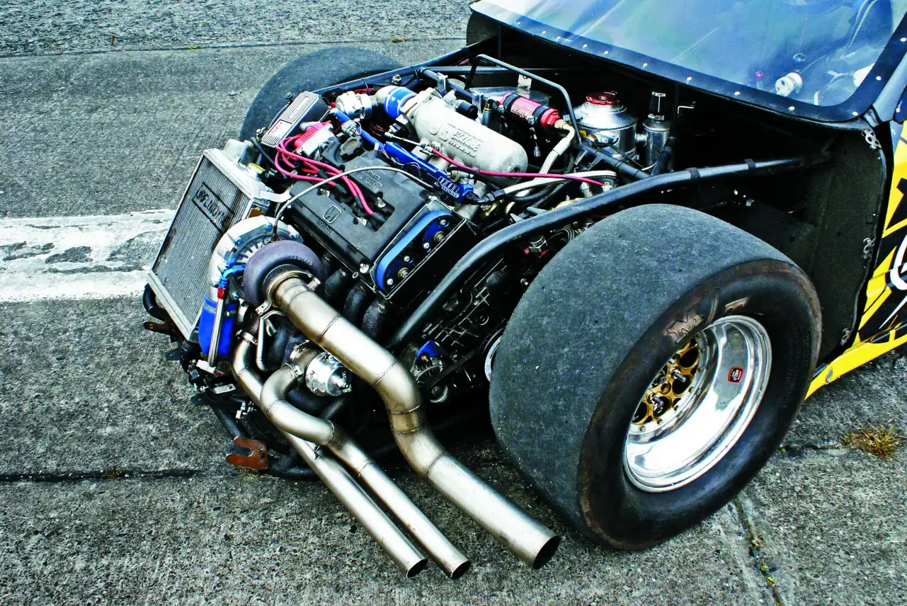 На этой ноте ты уже должен был окончательно дозреть до вопроса "сколько?". При давлении 1,4 бар мощность мотора составляет 490 лошадей, чего вполне достаточно, учитывая массу в 580 килограммов. Но были случаи, когда Витольд поднимал давление до 1,8 (640 л.с.)... Это произошло на стрипе в Драхтене, Голландия. К тому моменту Витольд ни разу не ездил на своем новом дрэгстере. И первый раз стал счастливым: не знаем, что пережил этот парень во время заезда, но длился он рекордно короткое время: 9,997 секунды – новый европейский рекорд для переднего привода. На бельгийском КОЕ Витольд скромно выставил 1,4 бар. Трасса была каменистая, и, поскольку пластиковый капот цеплял за слики, ездили без него. Для того чтобы камни не попали в систему ГРМ, команда смастерила защиту из жестяной банки из-под сосисок. И хоть защита надежно сработала, она не помогла снизить время ниже 10,4 секунды...