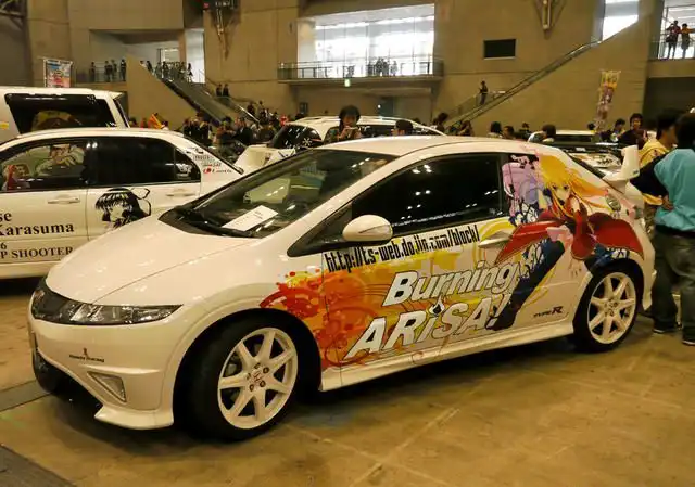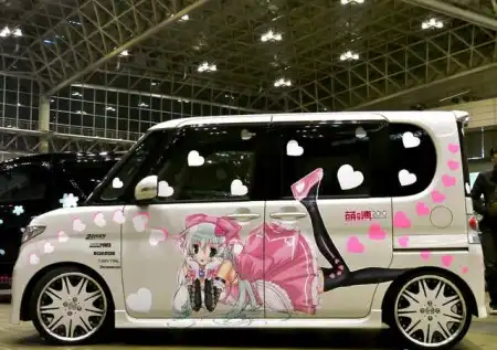 На автошоу приехали свыше 100 уникальных автомобилей, подготовленных энтузиастами-художниками. Главная тема работ — девочки из мультсериалов и просто анимэшные красотки.