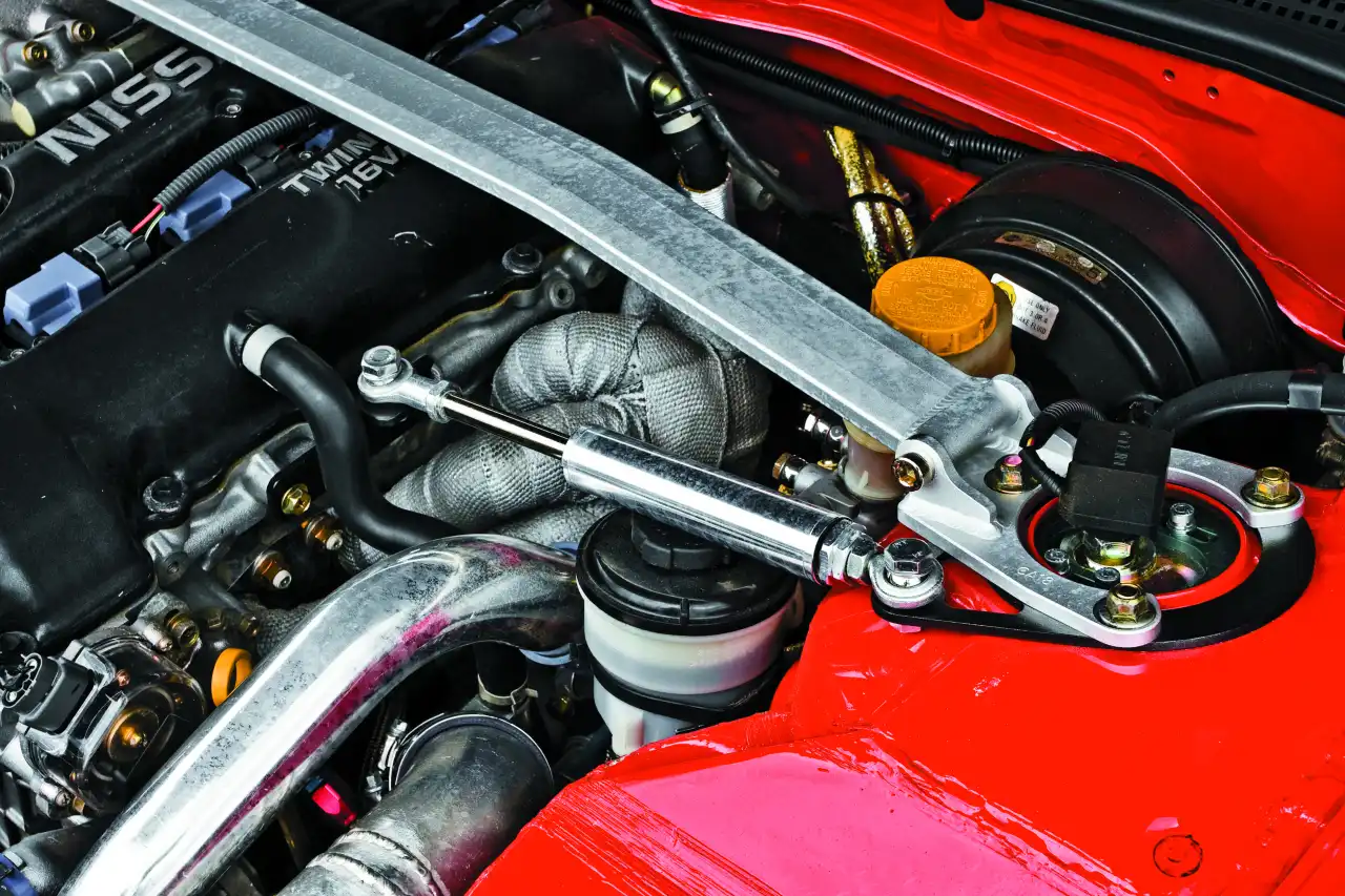 Первый элемент – подвеска. Она должна быть максимально жесткой, чтобы предотвратить даже малейшие крены и передавать реакцию на поворот руля мгновенно. Кинематика дрифтовой подвески схожа с кинематикой подвесок кольцевых автомобилей, и "рулежка" – один из важнейших элементов управления автомобилем. Разница лишь в настройках. Для данного автомобиля первым ингредиентом явились койловеры Tein Flex. Понимающий человек скажет, что, мол, ни фига они не дрифтовые. Но есть оправдание – просто пришлось пойти на компромисс, так как трассы наших дрифтовых чемпионатов не обладают хорошим асфальтом, поэтому тот же Tein Super Drift ведет себя менее предсказуемо и стабильно. Ну и, естественно, заменили все рычаги подвески на полностью регулируемые, с креплением на стальных ШСах вместо стандартных резиновых сайлентблоков, и установили толстые стабилизаторы и распорки. Кстати, регулировку сжатия и отбоя можно проводить прямо из салона благодаря устройству EDFC.