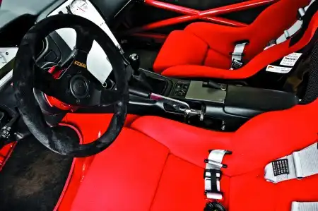 Четвертый – надежность, в основе которой лежит, прежде всего, хорошее охлаждение двигателя. Это действительно важно, ведь мотору в своем максимальном режиме приходится работать в отсутствие встречного потока холодного воздуха. Поэтому в системе охлаждения не оставили стандартных деталей, а установили: интеркулер Type R от GReddy, дополнительный радиатор Mocal на гидроусилитель, огромный 19-рядный масляный радиатор GReddy и заменили стоковый радиатор на "холодильник" Koyo. Сняли стандартный механический вентилятор, который, естественно, уже не справлялся с пылом четырехсотсильного SR20DET, и вместо него установили экономящий мощность электрический от Spal, который включается только по мере необходимости.