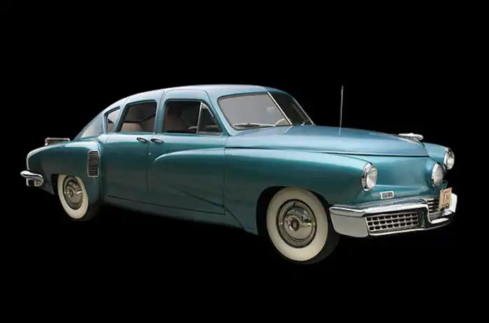 Tucker Model 48 Torpedo 1948 года выпуска. Автомобиль Tucker Torpedo напоминал по дизайну ракету и имел смелый дизайн решетки радиатора, четырехступенчатую коробку передач, а также встроенный сзади двигатель, который можно было легко убрать. Амбициозные планы Престона Такера о массовом производстве этого автомобиля так никогда и не реализовались. (Peter Harholdt)