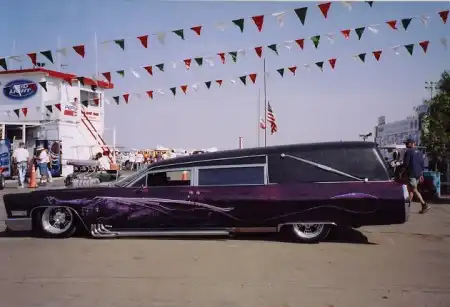 В нашей стране за последние 100 лет произведено что-то около 10 легковых катафалков. А вот в США, где в автомобилях рождаются, занимаются сексом и умирают, катафалки делались по 2000 штук в год и самими заводами, и специальными кузовными ателье, и даже отдельными энтузиастами и, разумеется, стали отдельным культом. Так что тюнинг катафалков – не такое уж уникальное явление, как можно подумать. На сайте клуба любителей катафалков http://members.aol.com/hearseq/grimride