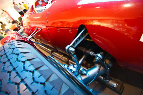 Всегда интересно разглядывать подвеску гоночных автомобилей: рычаги, кулачки, горизонтально расположенные амортизаторы итд.