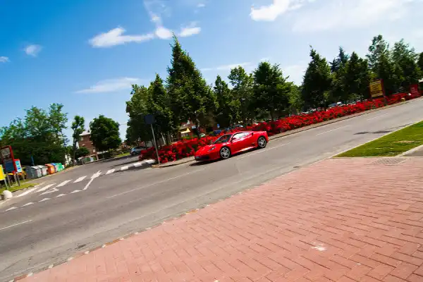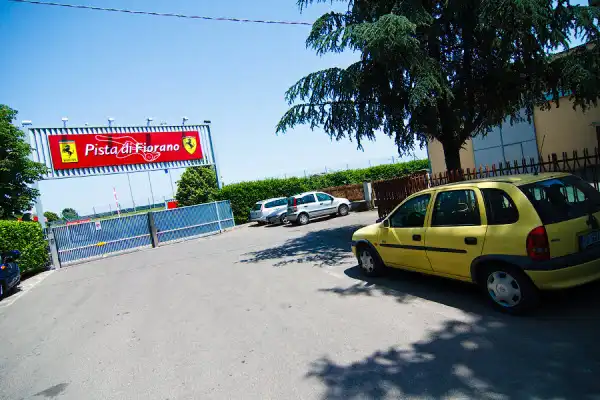 Музей музеем, но с самого утра меня не переставала волновать судьба трассы Фьорано. Точнее моя судьба, уж очень хотелось туда попасть. Найти трассу и подезд к ней мы самостоятельно не смогли, пришлось спрашивать итальянцев. А они там, к слову сказать, по-английски, как и я по-итальянски - не говорят! Пришлось звуками объяснять, что мне нужно, изображая Ferrari, показывать, рисовать руками кольцо итд. В итоге они громко закричали: "Ах писта! Писта!" Как выяснилось, это они не ругались. Pista с итальянского - круг, кольцо. В данном случаи Pista Fiorano.
