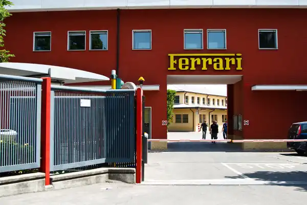 Да, да, именно сюда. Вход на территория завода Ferrari: