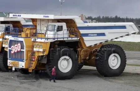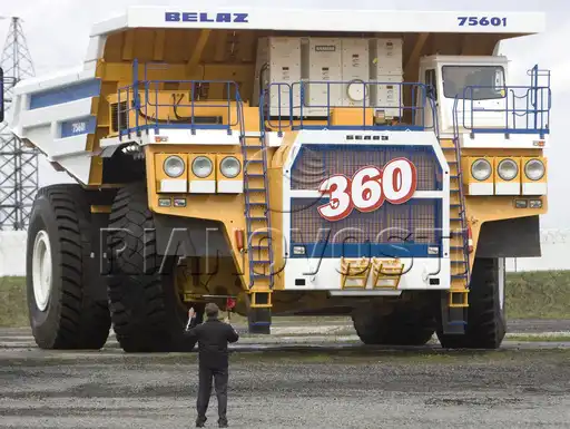 БелАЗ создал первый опытный образец карьерного самосвала грузоподъемностью 360 тонн. Об этом сообщил первый заместитель генерального конструктора ОАО "БелАЗ" Олег Степук 23 апреля в Жодино. Эта машина обладает дизельным двигателем мощностью 3700 лошадиных сил, с электромеханической трансмиссией "Сименс".