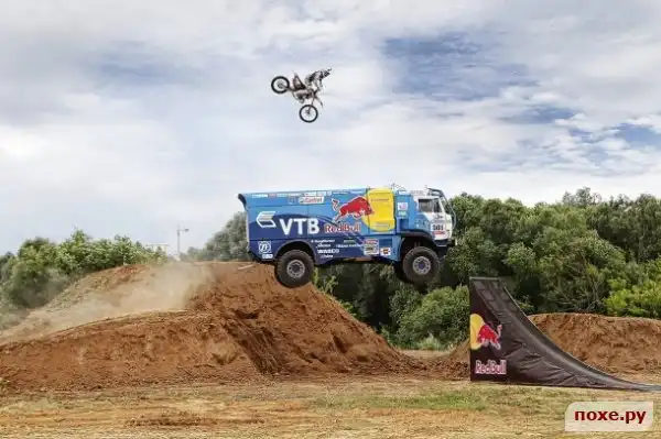 В Коломне состоялся совместный проект пилота команды КАМАЗ-мастер, многократного победителя ралли-рейда «Дакар» Владимира Чагина и российского мотофристайлера, участника московской остановки мирового тура Red Bull X-Fighters 2010, Алексея Колесникова. На окраине города на специально подготовленной площадке были сооружены два перпендикулярных друг другу трамплина — для перекрестного прыжка «КАМАЗа» и мотоцикла — проекта, беспрецедентного как для мото-, так и автоспорта.