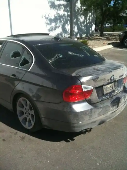 Интересный обстрел. Стреляли только по стеклам? На кузове ни одного следа пули нет... Зато стекла сразу видно, что биты специально, чтобы ни одного целого не осталось...