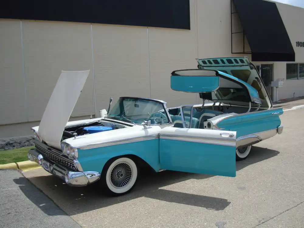Кабриолет или купе - таким вопросом обычно задаются необремененные семейными заботами молодые плейбои. Купе более практично, а кабриолет - более романтично. Вот здесь и начинается проблема выбора. И только инженерам компании Ford удалось решить эту проблему одним махом, создав первый серийный купе-кабриолет со складывающимся жестким верхом. Skyliner 1959 модельного года считается наиболее выдержанным и удачным в плане экстерьера. Внешность нового Skyliner была с претензией на респектабельность и солидность. Машина получила новый брусообразный бампер, привычную облицовку радиатора, вернулись задние круглые светоблоки.