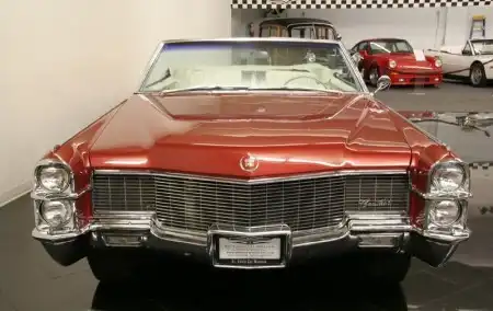В отношении переднего привода американцы шли своим путем. Если в Европе передний привод еще в 1930-е гг. довольно широко применяли на недорогих компактных машинах, то американцам захотелось ставить передний привод в первую очередь на дорогие и мощные автомобили. В 1930-е годы это был Cord, затем наступил длительный перерыв, и только в 1966 г. появился переднеприводный Oldsmobile Toronado, а год спустя - новый Cadillac Eldorado, предназначенный для зарождающейся ниши "персональных люксовых купе". Эта машина, не имевшая ничего общего с другими "Кадиллаками", кроме того же самого 340-сильного мотора, строилась только с кузовом купе. Вращающий момент с двигателя на коробку передач передавался с помощью цепи Морзе - таким образом, можно сказать, что Eldorado был не только первым переднеприводным "Кадиллаком", но и первой за долгое время машиной с цепным приводом. Cadillac Eldorado Convertible 1965 года – вот настоящий «золотой слиток» в коллекции Элвиса Пресли. Золотой в прямом смысле этого слова. Благородным металлом было покрыто все, что только возможно: рулевое колесо, телевизор, проигрыватель, телефон, хромированные детали, пластинки, прикрепленные к съемной крыше… Золото и жемчуг в большом количестве присутствовали и в краске для кузова, которую снова нанесли в сорок слоев.