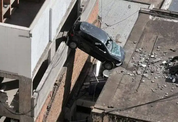 Все равно ремонт дороже нового выйдет. Проще ломиком с крыши вниз сковырнуть, нехай приземляется. Снять номера, всем рассказать "угнали".