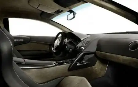 Салон Lamborghini Reventon в целом напоминает Murcielago. Карбоновое волокно, композитные материалы, особый вид стали и несколько штрихов, освежающих обстановку, придающих изюминку. Получилось функционально и модно. Выделить можно огромный TFT-монитор, похожий на те, которые используют в авиации, и G-Meter – прибор для измерения перегрузок. А приборная панель и вовсе из футуристических фильмов об автомобилях будущего.