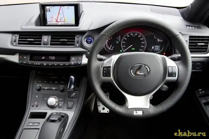 Интерьер хэтчбека CT 200h с пакетом F Sport может похвастать металлическими накладками на педали, новым рулевым колесом и панелью приборов в стиле