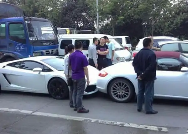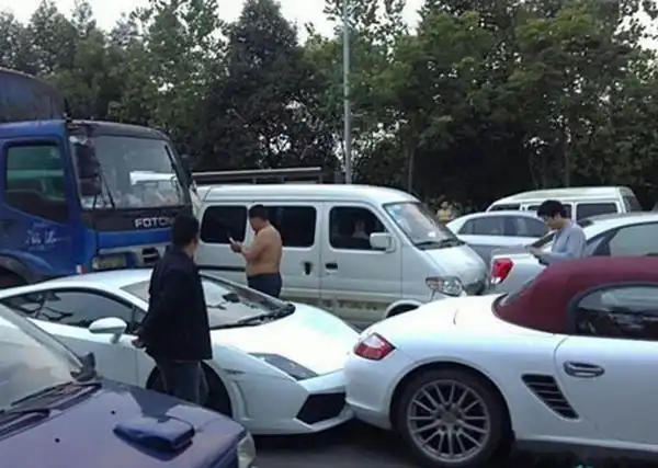 Это произошло в "Поднебесной", т.е. в Китае. Старый грузовик не успел оттормозиться и "собрал" кучку машин, среди которых 3 суперкара...