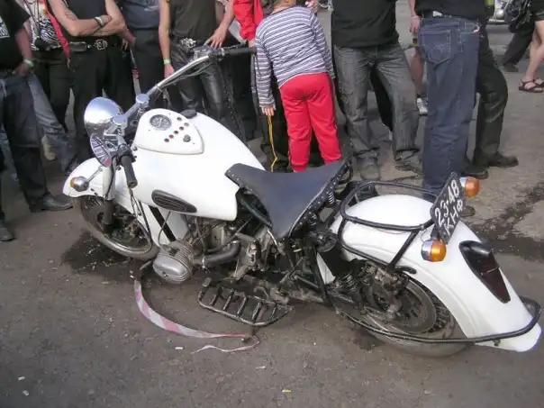 разбитого мотоцикла Урал, серьёзными повреждениями и как заключили эксперты страховой не подлежит востановлению.