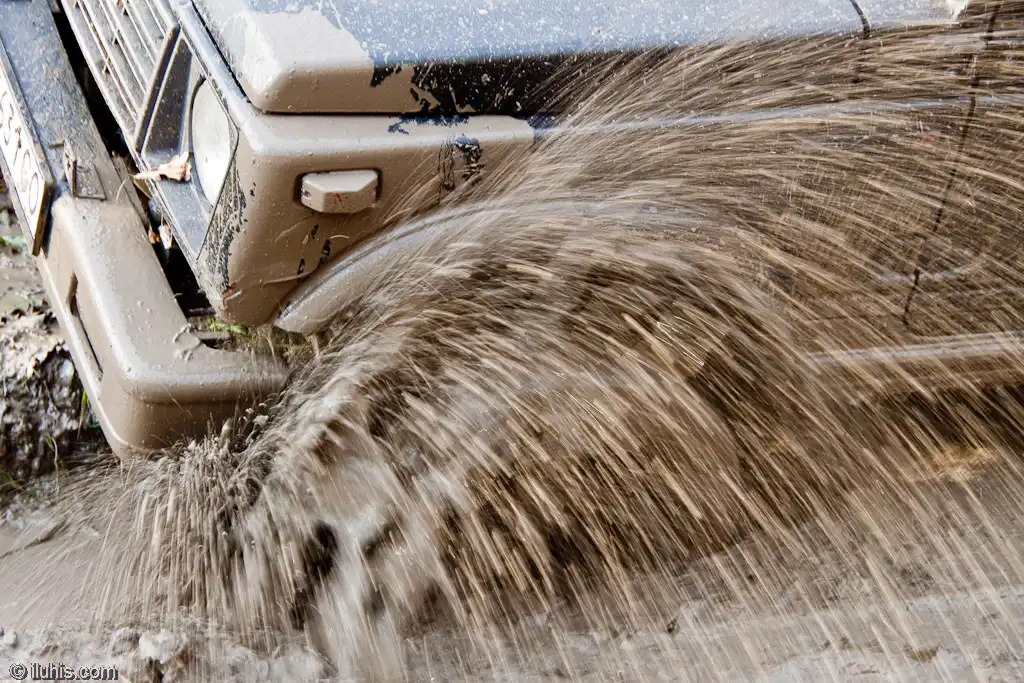 Примерно 1/3 леса Илюхис проехал на крыше Nissan Patrol до того времени пока мы не застряли в смачной луже и пока меня не окатило справа грязью из нее.