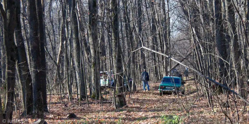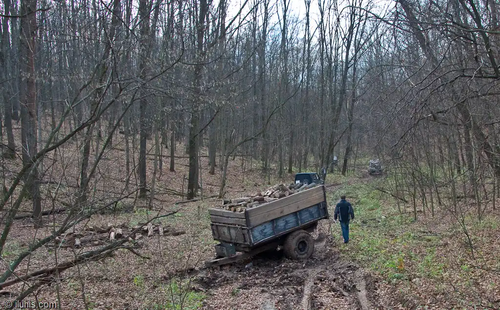 Посреди леса обнаружили прицеп с дровами, очевидно люди, которые этот прицеп оставили, не ожидали, что мимо него проедет два десятка машин, притом большинство будет способно этот прицеп за собой утащить. Но решили, таки, его оставить. Сидя на крыше внедорожника и проезжая мимо этого прицепа на расстоянии вытянутой руки хотелось пару бревнышек закинуть к себе на багажник.