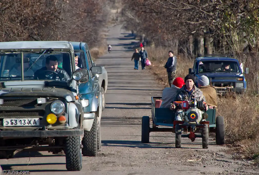 С самого начала нашу немалую колонну внедорожников провожали удивленными взглядами, хотя и мы, увидев пару раз необычную технику, имеющую отдаленно отношение к внедорожью, тоже удивлялись.