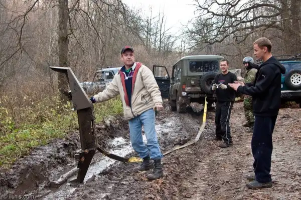 В самом начале покатушки у нас был один УАЗ с неработающим стартером. В конце поездки в состав «неглушимых» присоединился еще один УАЗ, Нива и один УАЗ в конце покатушки во время мойки почти утопили . Отряд «Неглушимых» таскали по лесу наравне со всеми – по всем тем лужам, куда они сами заехать не смогли.