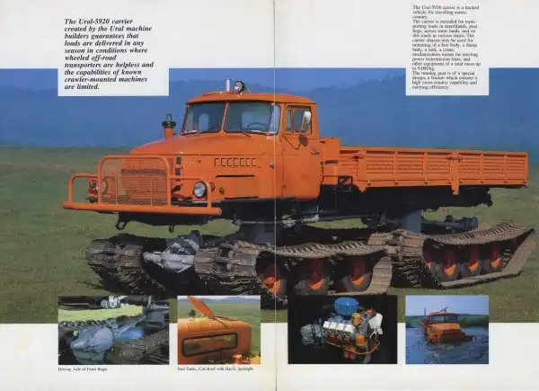 Назначение: Предназначен для перевозки тяжелых грузов по грязи, в заболоченных, заводненных и снежных условиях. Высокая платформа и хорошо уплотненные компоненты ходовой части обеспечивают отличную проходимость вброд.