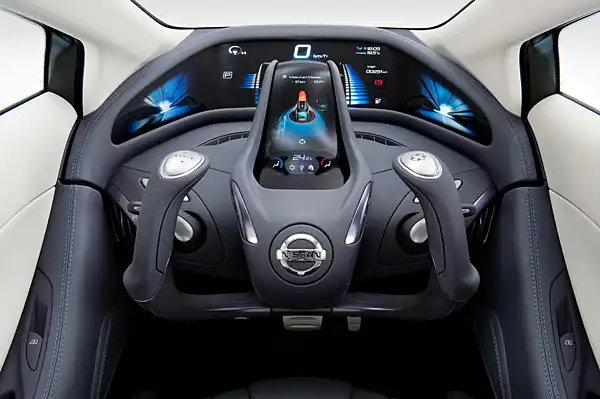 консепт-кар, очень близкий к серийному производству, представляет собой двухместную капсулу на четырехколесном шасси. Посадочные кресла расположены последовательно. При вхождении в поворот кузов автомобиля слегка кренится, как мотоцикл. Угол наклона может составлять до 17 градусов. Nissan утверждает, что автомобиль хорошо будет держать поворот практически на любой скорости, сообщая водителю уверенность в надежности управления.
