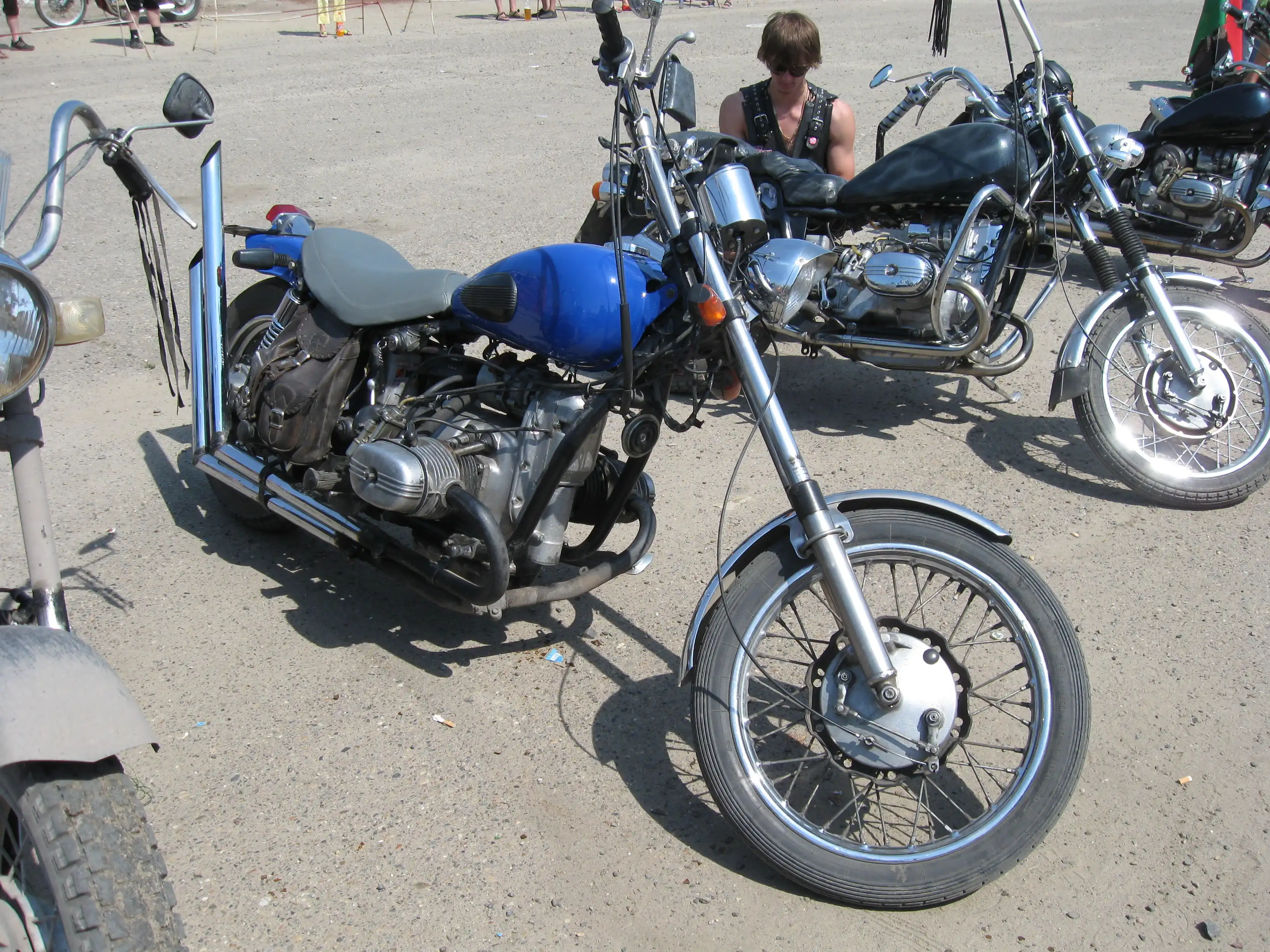Как только увидел первое фото, сразу понял, кто это. Привет Парусинке от Виталяна на черном бандосе. (AHTUXPUCT). А для тех, кто не в теме: байкеры гоняющие на мотике зделанном своими руками пользуются уважением среди мото движения.