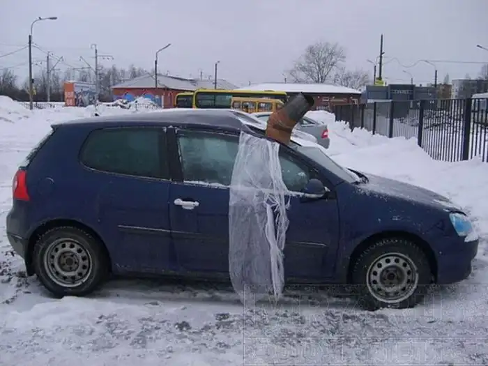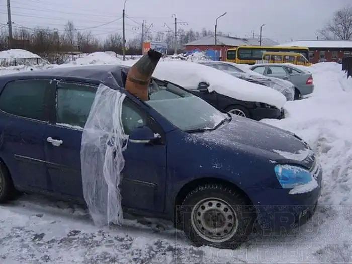 стекло было разбито, а из сиденья пассажира торчала водосточная труба, наполненная льдом.