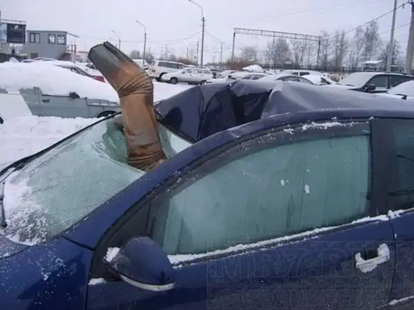 проспекту, когда внезапно в лобовое стекло с дома упала водосточная труба с огромным куском льда внутри.