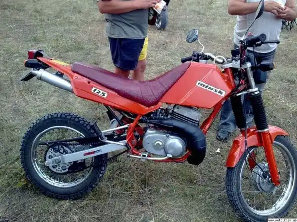 В 1951 году, в связи с перепрофилированием Московского мотозавода и растущей потребностью страны в простой и надёжной мототехнике, на Минский велозавод было передано производство мотоциклов "Москва" М1А (копии DKW RT125). Несмотря ни на что, наследники этой машины, легкие 125-кубовые мотоциклы и до сих пор составляют основную производственную программу предприятия (только если раньше машины с маркой "Минск" пользовались огромным спросом и поставлялись на внутренний рынок то с распадом СССР картина изменилась. Но малая цена и высокая надёжность определили их популярность в странах третьего мира, куда сейчас в основном и уходит практически вся продукция). Одновременно с Минским заводом в те годы эту модель выпускали в г.Коврове Владимирской области под маркой "К-125" до 1958 включительно, а также такие известные фирмы, как «Харлей-давидсон» в США (с 1948 г.), «БСА» в Англии (с 1948 г.), «Ямаха» в Японии (с 1954 г.). Английский «БСА -Д1» представлял собой зеркальную копию немецкого мотоцикла: цепь задней передачи находилась не справа, а слева, механизм переключения передач перекочевал на правую сторону и т.п. как принято в Англии. Выпускался этот мотоцикл и на родине, в г.Цшопау (тогда уже в ГДР) в корпусах бывшего завода ДКВ, который стал называться "Народное предприятие ИФА" (с 1956 г. оно называлось "МЦ"). С 1948 г. стало оно начало изготавливать мотоциклы «ИФА-РТ-125», а бывший филиал в Ингольштадте (ФРГ) тоже возобновил производство этой модели под первоначальным наименованием. Таким образом, к 1950 г., восемь заводов в семи странах мира выпускали одну и ту же конструкцию. Вначале это был одноместный мотоцикл М1А с неподрессоренным задним колесом и пружинной телескопической передней вилкой. Цилиндр двигателя с небольшим, по сегодняшним понятиям, оребрением отливался из чугуна и имел необработанные (литые) продувочные каналы. На двигателе устанавливался простейший карбюратор К-30 с диаметром диффузора всего 16 мм. Столь же простой сетчатый воздухофильтр был снабжен заслонкой, при закрытии которой уменьшалось поступление воздуха и обогащалась горючая смесь. Электрооборудование мотоцикла включало в себя генератор постоянного тока и аккумулятор. Мотоцикл был снабжен трехступенчатой коробкой передач и открытой цепью главной передачи. Двигатель развивал мощность 4,25 л.с. при 4500 об/мин. коленчатого вала, что позволяло достигать максимальной скорости 70 км/ч. В 1956 г. завод перешел на выпуск модернизированного мотоцикла М1М. На нем уже была применена маятниковая подвеска заднего колеса с пружинными амортизаторами. Подвеска была снабжена демпферами, в которых гашение колебаний осуществлялось за счет сухого трения между фрикционными шайбами. Вместо телескопической использовалась короткорычажная передняя вилка толкающего типа с пружинными амортизаторами. На М1М впервые было применено электрооборудование, работавшее на переменном токе. Изменился и двигатель. Вместо литых использованы сверленые продувочные каналы цилиндра с алюминиевыми заглушками. Был установлен новый карбюратор К-55 с диаметром диффузора 20 мм, а так же новая головка цилиндра с несколько повышенной степенью сжатия. Это позволяло повысить мощность двигателя до 5 л. с., а максимальную скорость до 75 км/ч. Мотоцикл М1М отличался оригинальной формой глубоких сварных крыльев и очень мягкой подвеской, ко