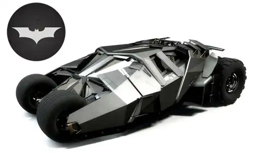 Комплектация: Реактивный двигатель, сферические бомбы, пулеметы Браунинг, абордажная кошка, бэтдиски, излучатели дыма, управление голосом, пуленепробиваемая броня и CD-плеер.