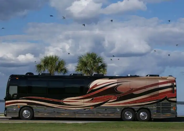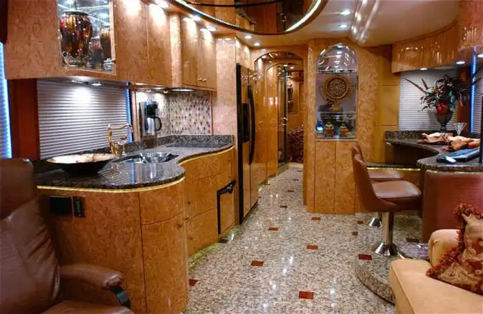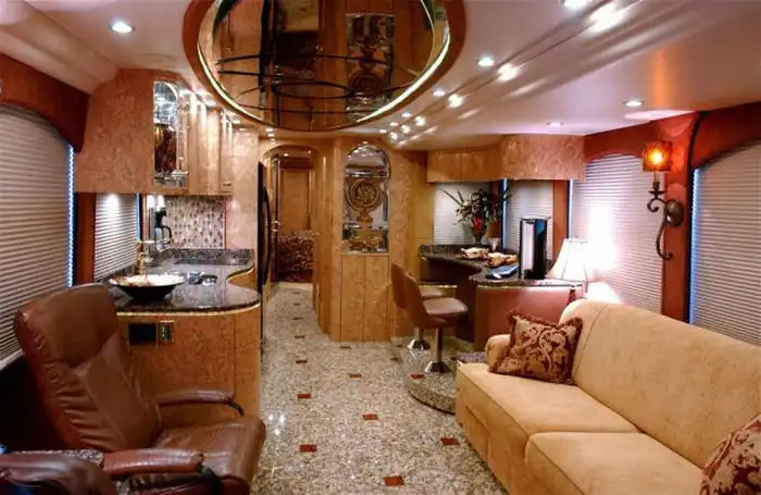 Отличный автобус созданный для путешествий.Это настоящий дом на колесах с интерьером дорогого особняка.
