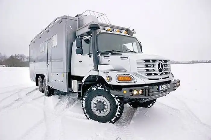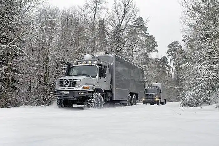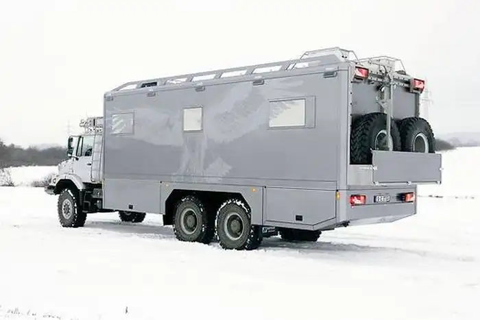 Как вам такой транспорт для охоты? В нем есть, душ, огромная кровать и кухня.И даже квадроцикл!