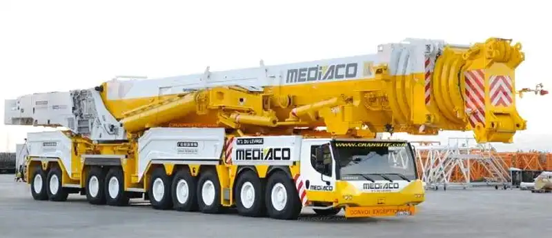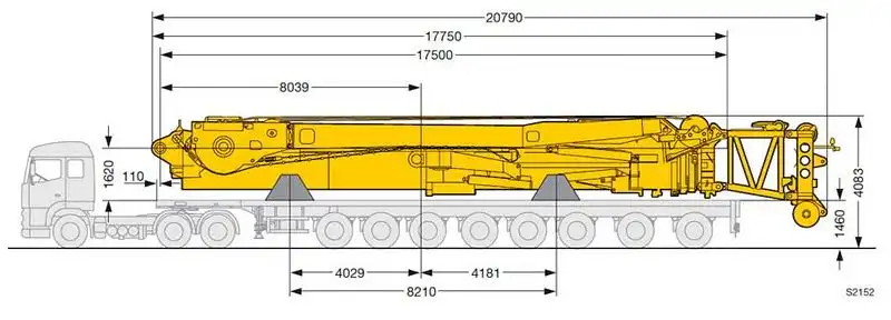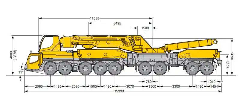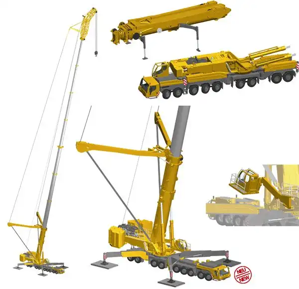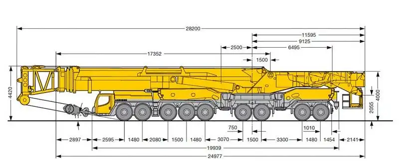 Модель LTM 11200-9.1 является самым мощным телескопическим краном на сегодня на рынке и имеет самую длинную в мире телескопическую стрелу. Выдвижение 8-секционной стрелы на требуемую длину и закрепление ее на фиксаторы происходит полностью автоматически. Дополнительно имеются различные решетчатые удлинители. Заслуживает внимания увеличение грузоподъемности благодаря Y-расчалу телескопической стрелы. На 9-осном ходовом устройстве установлено разработанное в концерне Либхерр активное рулевое управление задними мостами, зависящее от скорости. Дисковые тормоза вносят свой вклад в повышение безопасности и экономичности.