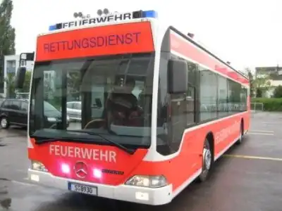 Обычный городской автобус переделан в машину скорой помощи с местоми для 15 пациентов.