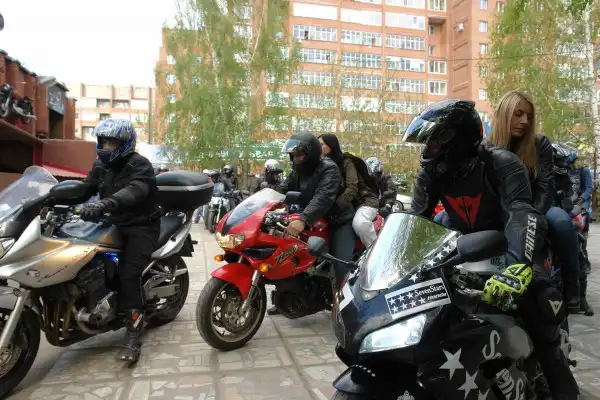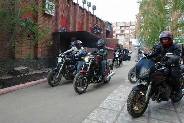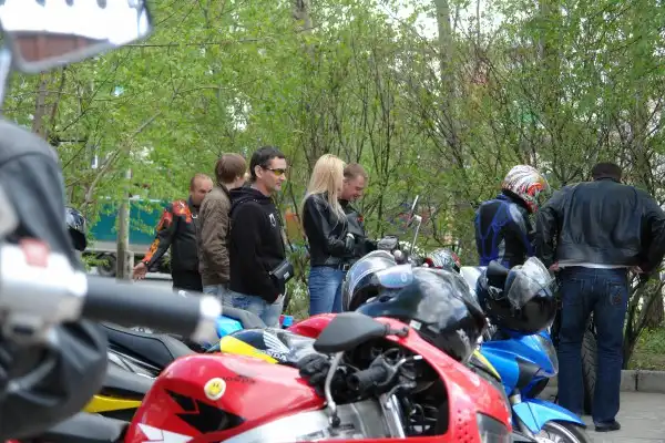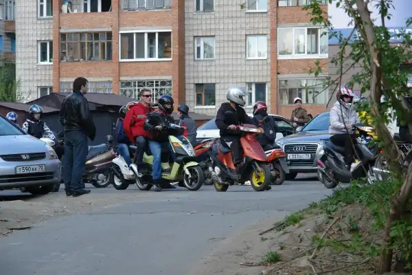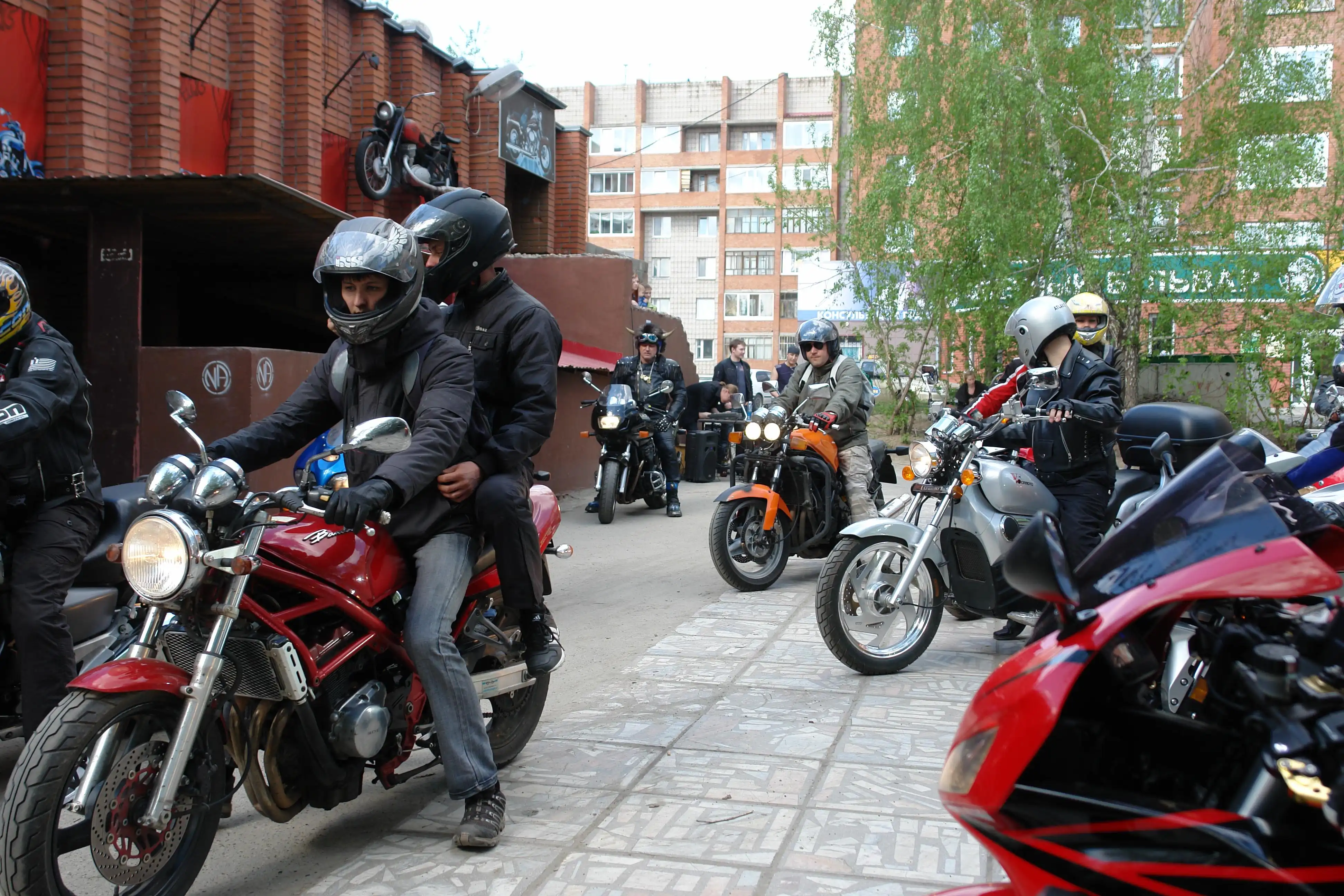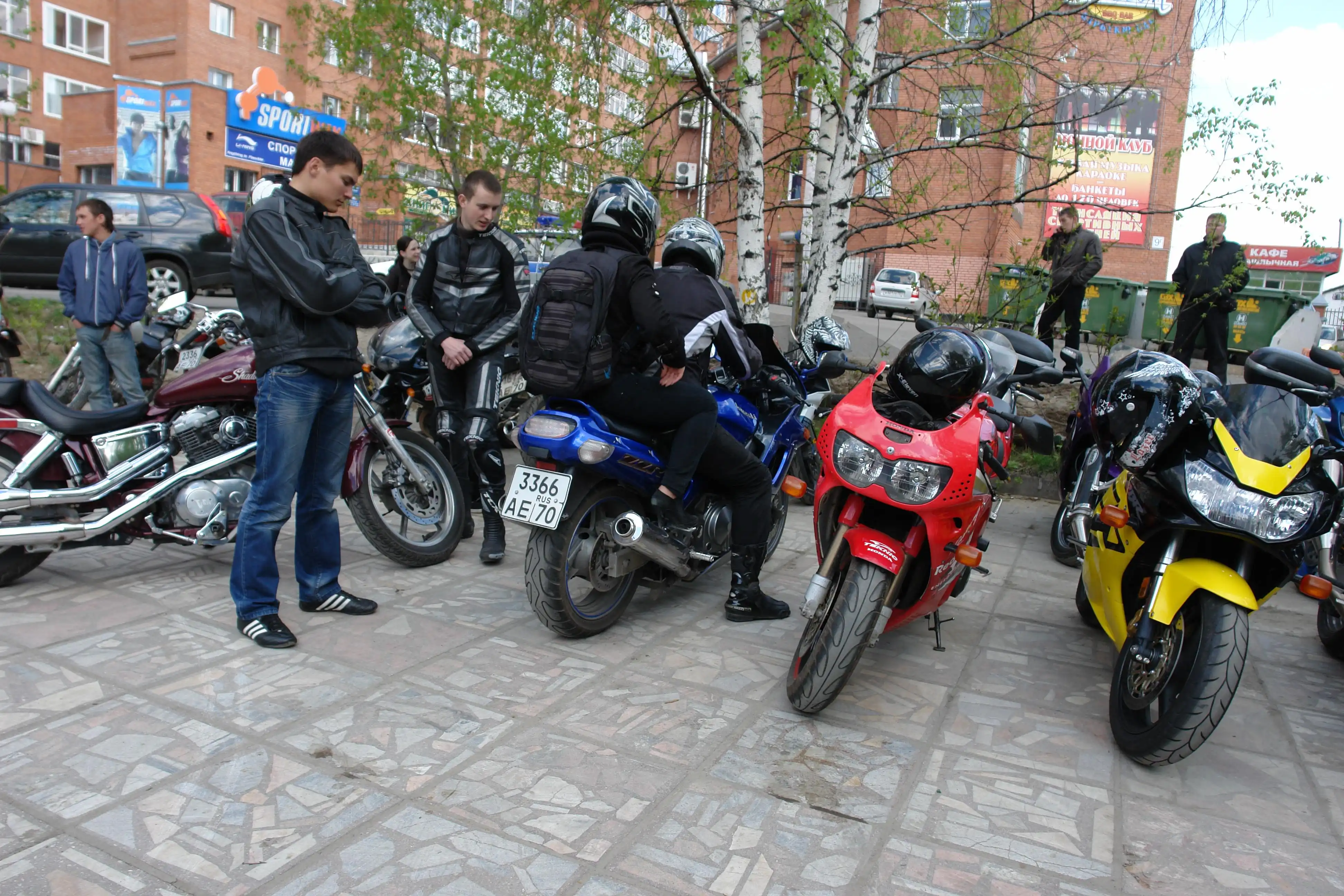 тусуются значит байкера. одной кучкой олдовые, вальяжно покуривают, на свои темы общаются. а другой - молодые, на спортивках визжащих туда-сюда гоняют, выпендриваются. ну подходит один из вторых к кучке первых и говорит: