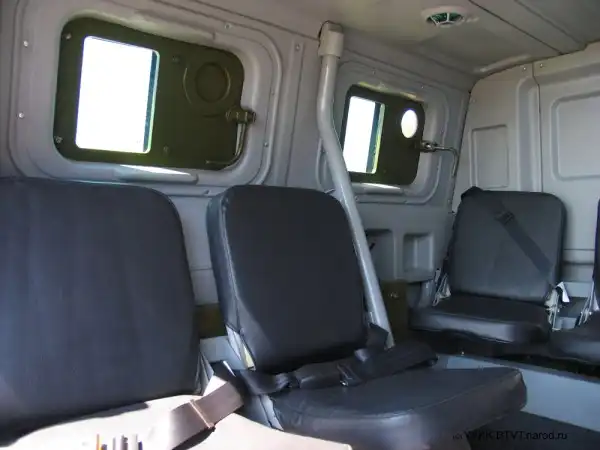 Запас мощности по двигателю в 300 л.с. против 190 л.с. у «Ивеко», позволяет выполнить различные требования заказчика по усилению бронезащиты.