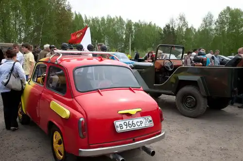 На площади возле Белого озера выстроились более трёх десятков машин, сотни томичей пришли посмотреть на раритеты отечественного и зарубежного автопрома.