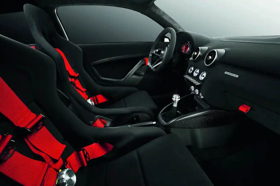 Весьма заметно был переосмыслен интерьер. Салон теперь отделан черной алькантарой и украшен вставками из карбона. Штатные сидения заменены на «ковши» от суперкара Audi R8 GT с четырехточечными ремнями безопасности.