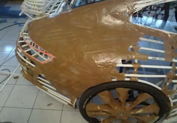 Обклеили чемто вроде фольги, надеюсь саянской, а то пассажир на солнце не прожариться), да и дождь корпус не выдержит... сим агрегатом только любоваться, а то так не поездишь на нем толком... :(